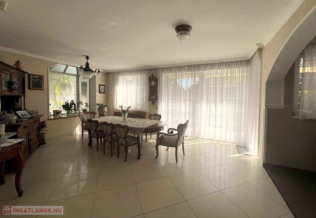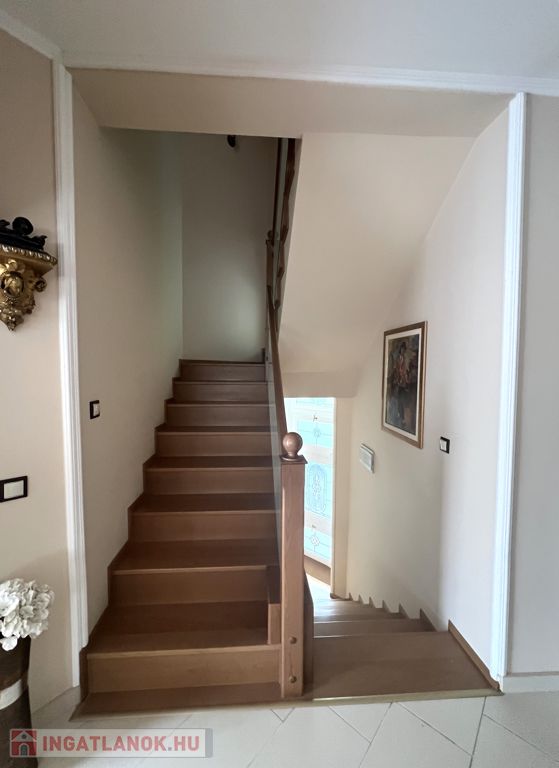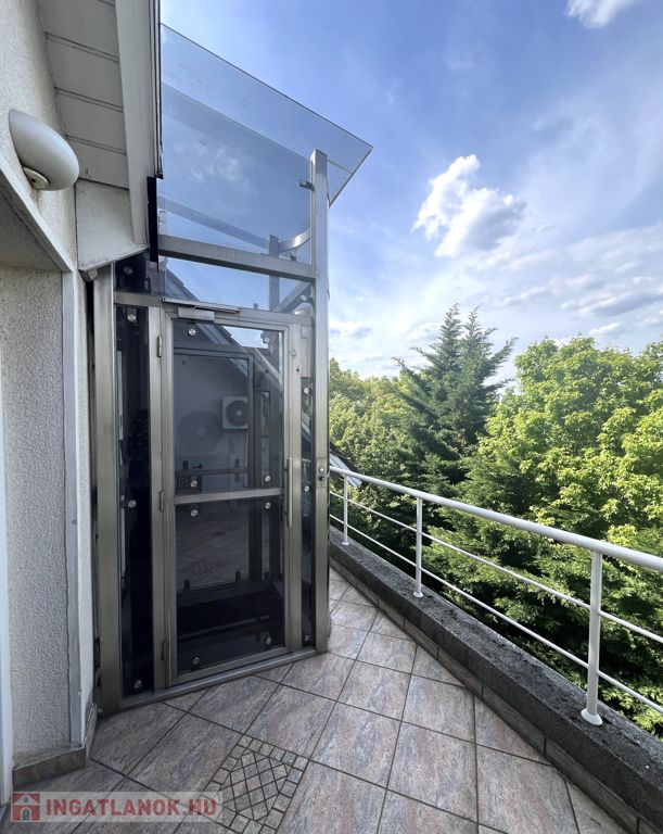 Napfényes elegáns földszinti és emeleti lakószintek nagy nappaliterekkel és szobákkal, elegáns természetes fénnyel megvilágított fürdőszobákkal, plusz szintenként önálló wc-mosdó helyiséggel. Az akár önállóan használható - jelenleg elegáns iroda - tetőtéri szinthez üvegezett LIFT kiépített. Az alagsori szinten autóbeállók, szauna és kiszolgáló terek.