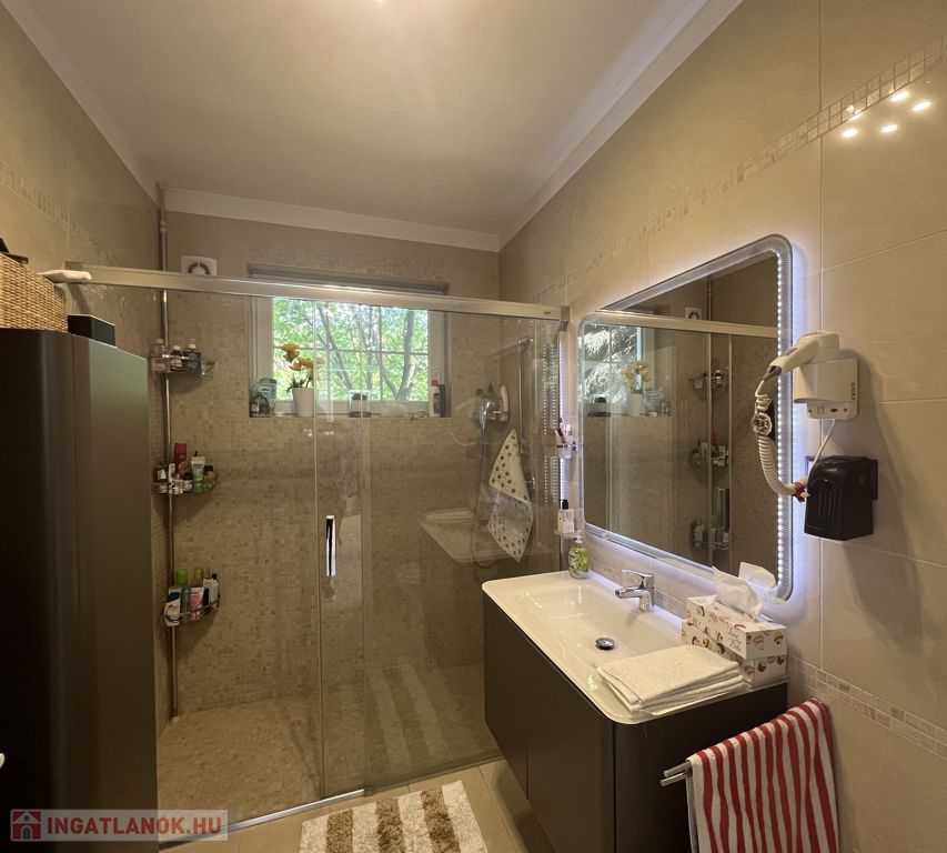 • a nappali előteréből nyíló fürdőszoba egyedi üvegezett zuhanyzótérrel,